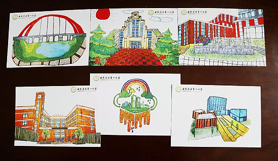 这些文创作品由一小学生在老师的指导下创作、设计、制作完成,其中手绘沣西地图及地标性建筑受到大家的广泛好评,四年级(2)班王泽睿,四年级(3)班王紫涵、吕周园、范怡岚,四名同学手绘的沣西地标建筑脱颖而出。