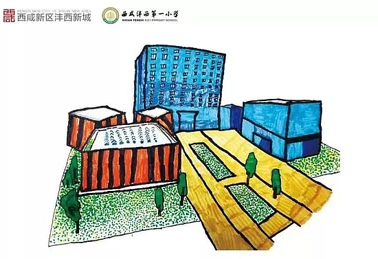 在征集阶段,许多同学绘制的新城地标建筑各具特点,在丰富多样的色彩搭配中,展现了孩子们眼中别样的沣西之美。