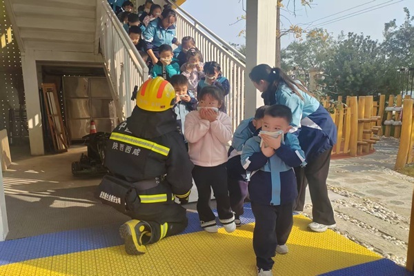 西咸新区消防救援支队原点小型站深入嘉悦翠缇幼儿园开展应急疏散演练