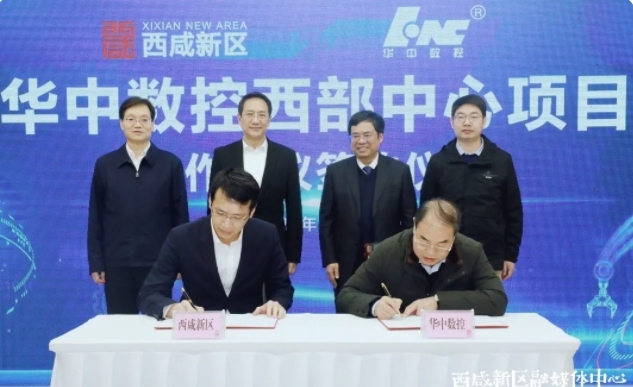 2月9日,华中数控西部中心项目签约落户西咸新区。西咸新区党工委书记杨仁华、华中数控股份有限公司董事长陈吉红、西咸新区管委会主任姜建春、国家数控系统工程技术研究中心陕西分中心主任缑异泽见证签约。西咸新区管委会副主任赵孝、武汉华中数控股份有限公司副总裁黄付中代表双方签约。