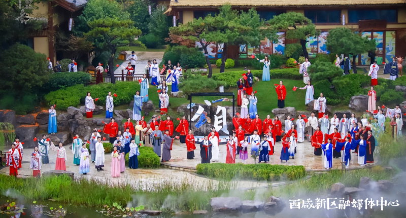 “蒹葭苍苍,白露为霜”“七月流火,九月授衣”……沣河之滨,在全国首个以《诗经》文化为主题的诗经里小镇,游客们不仅可以游览体验,还可能与“采诗官”邂逅,共同吟咏《诗经》篇章。