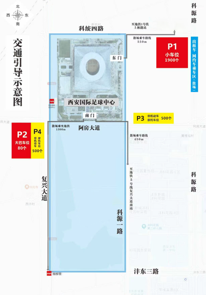 为提升出行效率、缓解足球中心周边集中到场压力,球迷在换乘地铁16号线前,可选择在地铁1号线三桥站(西咸万象城,含充足车位与餐饮)、上林路站(国润季,提供停车、餐饮配套),或地铁5号线阿房宫南站(西咸吾悦广场,可停车用餐)周边解决停车及用餐需求,随后换乘地铁16号线直达足球中心,保障出行顺畅。