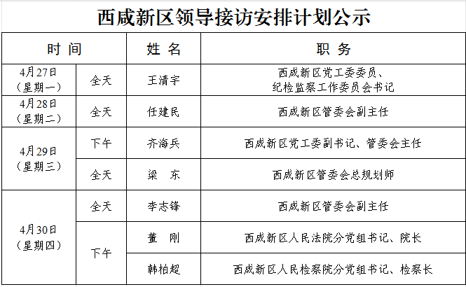 西咸新区领导接访安排计划公示(4月27日-4月30日)