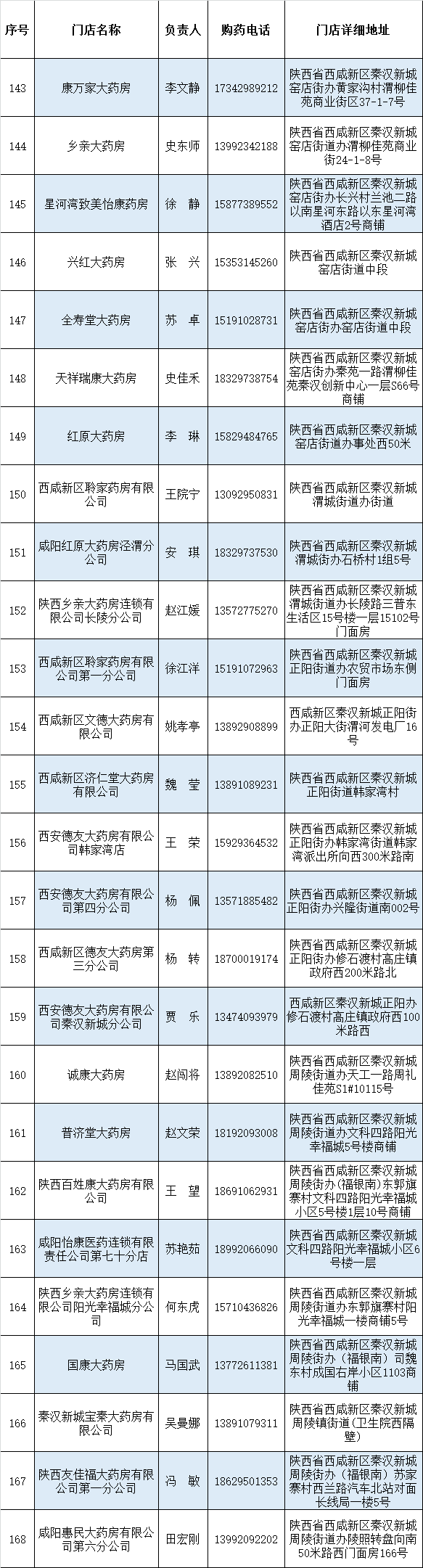 西咸新区疫情期间药品配送信息公示表