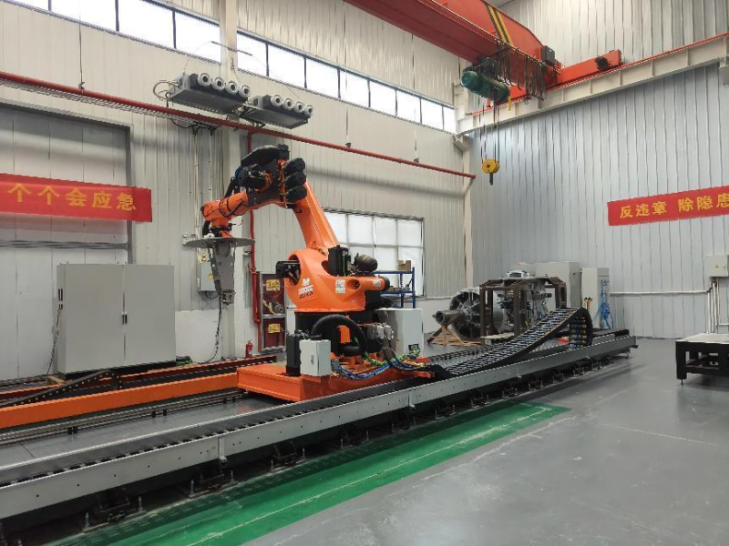 在西安华晟复材科技有限公司(以下简称“华晟复材”),机器人式自动铺丝机挥舞吊臂秀“绝活”,向大家展示先进的铺丝技术。